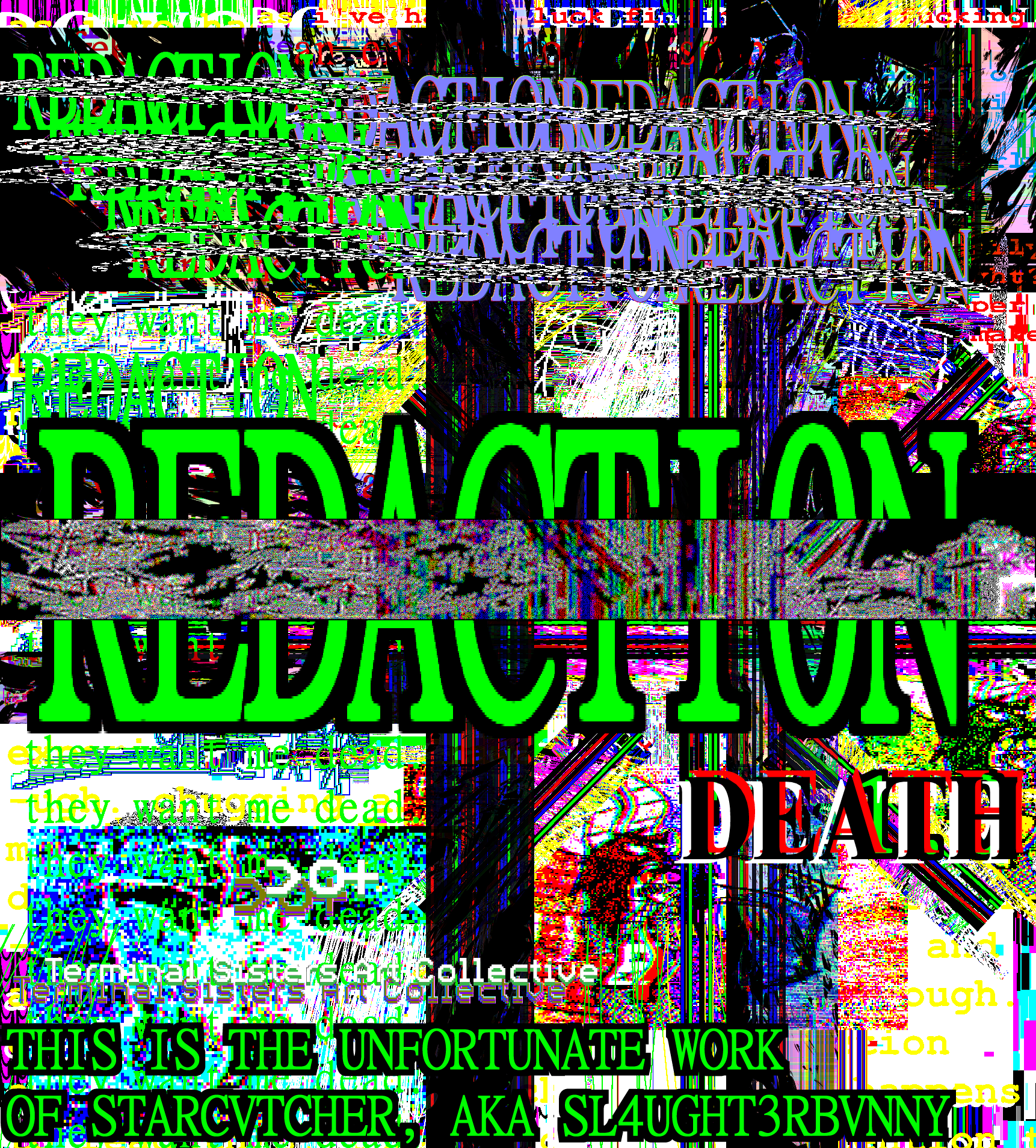 Detached burnout loser transsexual commits violence against its languished artwork, and then some. Musings and lamentations. Rapid eyestrain accelerationism in a brief 7-page artzine. Therapy time. Hellworld. Will be periodically updated, probably.